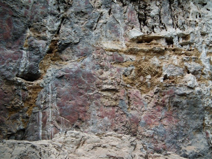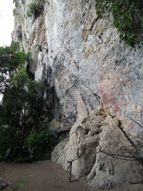 ภาพเขียนสีพบกระจายอยู่หลายกลุ่มเป็นระยะๆ พบตั้งแต่ในระดับสูงประมาณเอวจนถึงสูงกว่า 10 เมตร