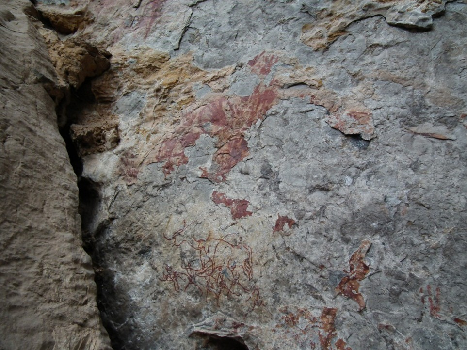 จากความเชื่อมโยงหลักฐานต่างๆ ทำให้ทราบว่ากลุ่มคนที่เข้ามาประกอบพิธีการฝังศพบริเวณใต้ภาพกลุ่มที่ 1 นี้ รู้จักและมีความคิดสร้างสรรค์ในการใช้สีแดงตกแต่งลวดลายบงบนสิ่งของเครื่องใช้ รวมทั้งใช้ในพิธีกรรมฝังศพด้วย และน่าจะเป็นกลุ่มคนที่วาดภาพเขียนสีบนผนังหน้าผาไว้บางส่วนด้วย?