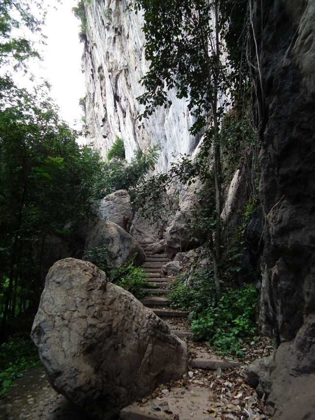 สภาพพื้นที่บริเวณนี้มีลักษณะเป็นหน้าผาสูงชันกว่า 50 เมตร เอียงตัวมาทางทิศตะวันออกเล็กน้อย ทำให้มีลักษณะคล้ายชะโงกเขา บนผนังหน้าผาปรากฏร่องรอยของทางน้ำไหลขนาดต่างๆจำนวนมาก มีหินงอกหินย้อยขนาดใหญ่บริเวณกลุ่มภาพที่ 3 และ 7 กองหินขนาดใหญ่บริเวณกลุ่มภาพที่ 6 ซึ่งอาจเกิดจากการกัดเซาะของทางน้ำใต้ผิวหินที่มีสูงและเป็นเวลานาน ทำให้เกิดเป็นโพรงขนาดต่างๆที่ไหล่เขาเป็นจำนวนมากจนทรุดพังลงเป็นหน้าผา แต่จากรอยแตกของดอยประตูผาตั้งแต่ยอดดอยถึงตีนดอยบริเวณกลุ่มภาพที่ 7 ซึ่งภายในมีก้อนหินขนาดต่างๆอัดแน่น และถูกเชื่อมประสานด้วยสารประกอบคาร์บอเนต จึงน่าจะมีกระบวนการกัดเซาะของทางน้ำแล้ว ยังอาจมีการไหวตัวของเปลือกโลกที่ทำให้เนื้อหินที่ไม่แข็งแรงจากกระบวนการกัดเซาะของน้ำอยู่แล้วนั้นเกิดแยกตัว และแนวเขาฝั่งตะวันออกเกิดการทรุดตัวลงหรือแนวเขาฝั่งตะวันตกยกตัวสูงขึ้น ทำให้เกิดเป็นหน้าผาดังที่เห็นในปัจจุบัน (ชินณวุฒิ วิลยาลัย 2542)